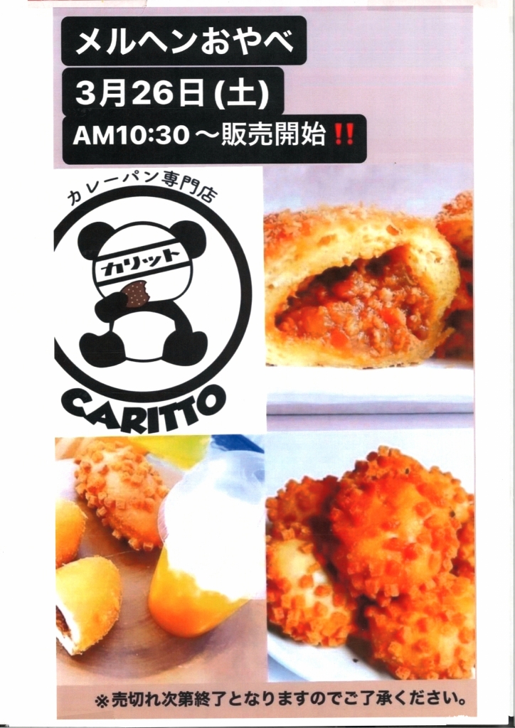 フルーツサンド「果々」&カレーパン「カリット」がやってくる! 2022 3/20 イベント情報 2022.03.20 2022.03.20 フルーツサンドでおなじみ「果々」と、カレーパンの「カリット」がやってくるよ! 売り切れ次第終了です。お早めに! イベント情報 よかったらシェアしてね! URL Copied! URL Copied! ドッグランのお知らせ ドッグランのお知らせ 関連記事 石動高校文化部合同展「iカルチャー展」開催 2024.03.12 音楽イベント開催♪ 2022.10.24 大歳の市開催! 2022.11.27 今年もやります!大歳の市! 2021.11.24 古本市開催! 2022.07.06 石動高校文化部合同展開催🖼 2025.03.11 ライブイベントのお知らせ 2022.01.01 食べて応援!能登牡蠣まつり開催決定! 2024.02.17