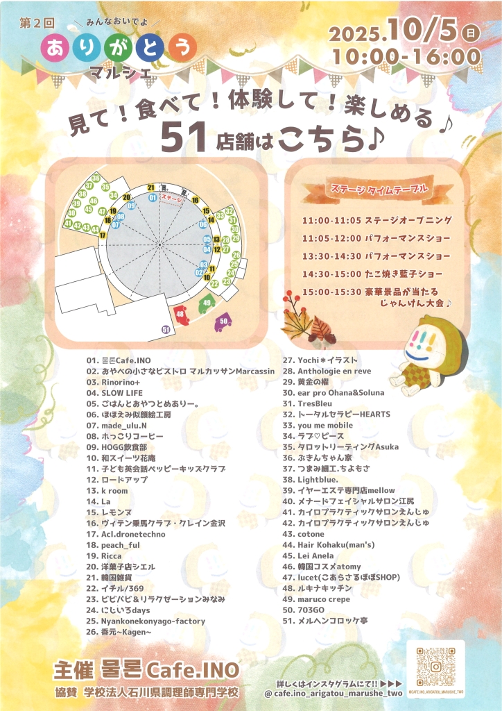 10/5(日)ありがとうマルシェ開催☆ 2025 9/09 イベント情報 2025.09.09 2025.09.09 6月に開催した「ありがとうマルシェ」がパワーアップして帰ってくるよ☆ ご来場をお待ちしております♪ イベント情報 よかったらシェアしてね! URL Copied! URL Copied! 9/13 信州フェアスタート🍏 ☆16周年祭☆ 関連記事 石動高校文化部合同展開催🖼 2025.03.11 小矢部市制60周年展示 2022.07.31 音楽イベントのお知らせ♪ 2023.05.10 夏休みだ!カブト虫だ! 2025.08.16 お盆切り花市開催🌼 2024.08.02 地域農産物売場よりうれしいお知らせ🌼 2024.04.19 3/2 えごま味噌の五平餅販売します! 2025.02.11 フルーツサンド「果々」&カレーパン「カリット」がやってくる! 2022.03.20