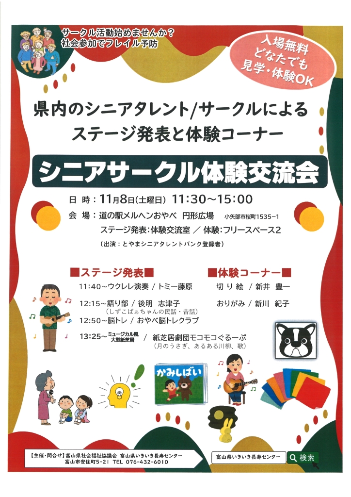 11/8(土)シニアサークル体験会 2025 10/21 イベント情報 2025.10.21 2025.10.21 無料でご参加いただけます。お気軽にどうぞ! イベント情報 よかったらシェアしてね! URL Copied! URL Copied! ☆16周年祭☆ 11/14~16 縄文土器・土面 作品展 関連記事 久しぶり!古本市開催📚 2023.10.23 「里山の四季展」開催中🖼 2021.12.12 食べて応援!能登牡蠣まつり開催決定! 2024.02.17 6/1(日) ありがとうマルシェ開催♪ 2025.05.17 3/2 えごま味噌の五平餅販売します! 2025.02.11 10/5(日)ありがとうマルシェ開催☆ 2025.09.09 GWにお花🌼のイベント開催 2024.04.21 石動高校文化部「iカルチャー展」のお知らせ 2022.03.05