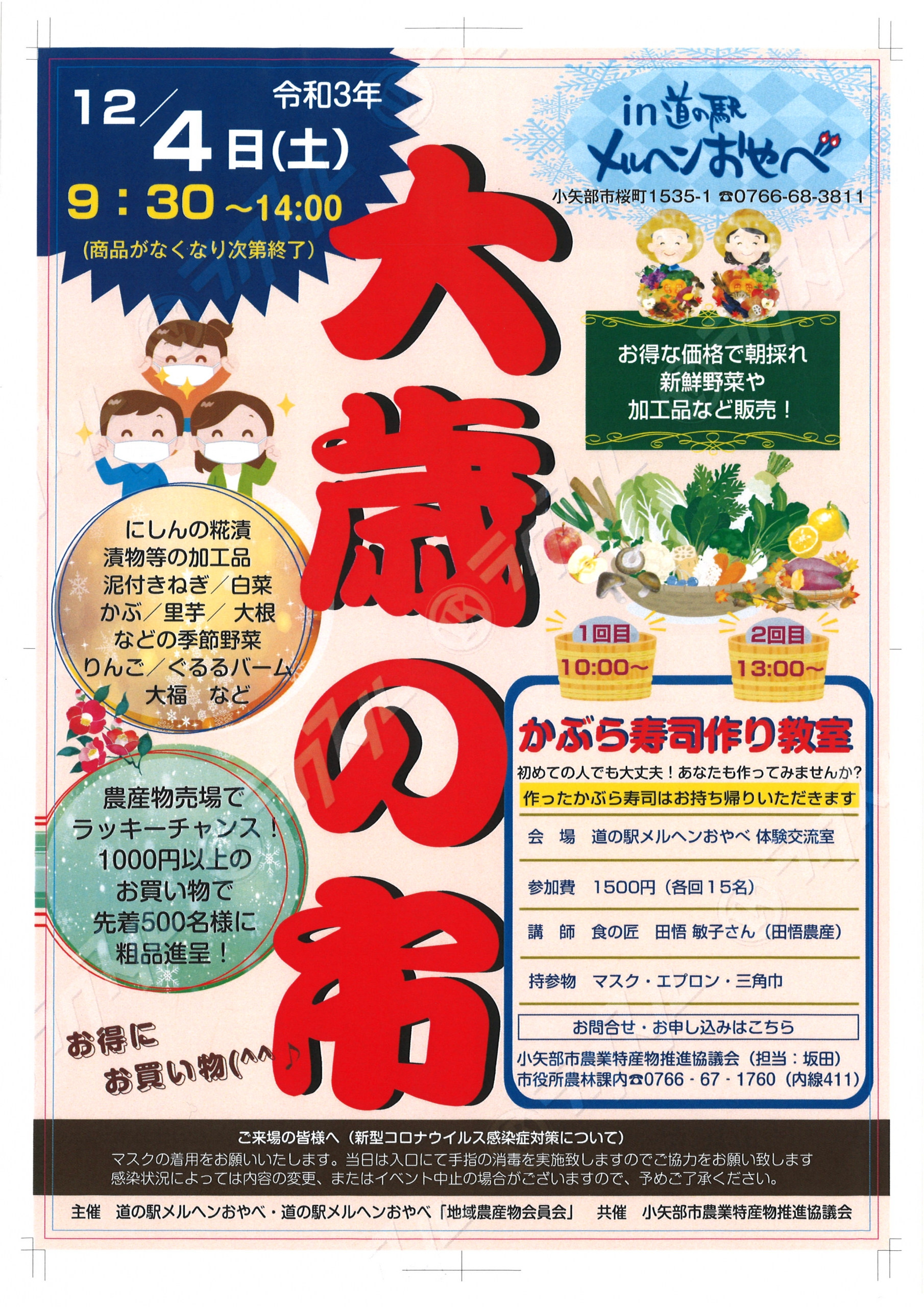 また、簡単!かぶら寿し教室もありますよ☆ 人数が集まり次第受付終了なので、ぜひお早めに 詳しくは下記チラシを!